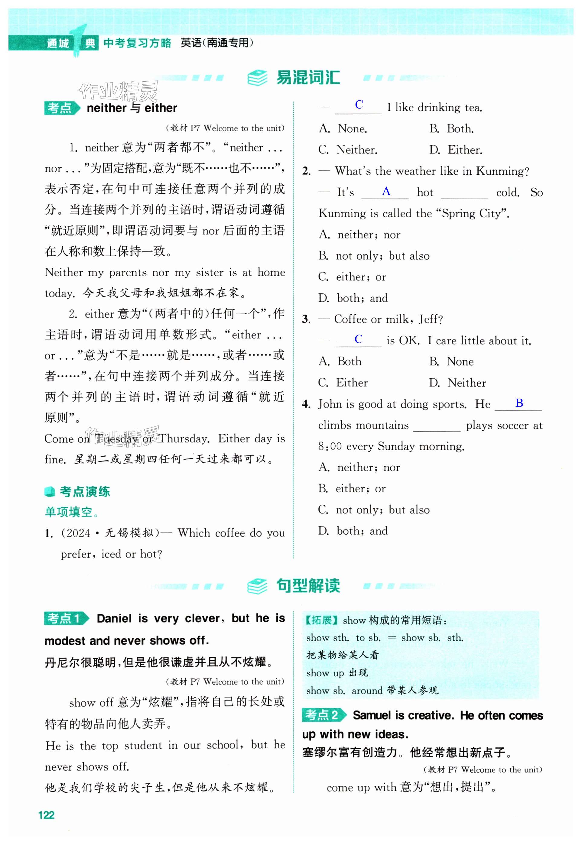 注:目前有些书本章节名称可能整理的还不是很完善,但都是按照顺序排列的,请同学们按照顺序仔细查找。练习册 2025年通城学典通城1典中考复习方略英语南通专用 答案主要是用来给同学们做完题方便对答案用的,请勿直接抄袭。