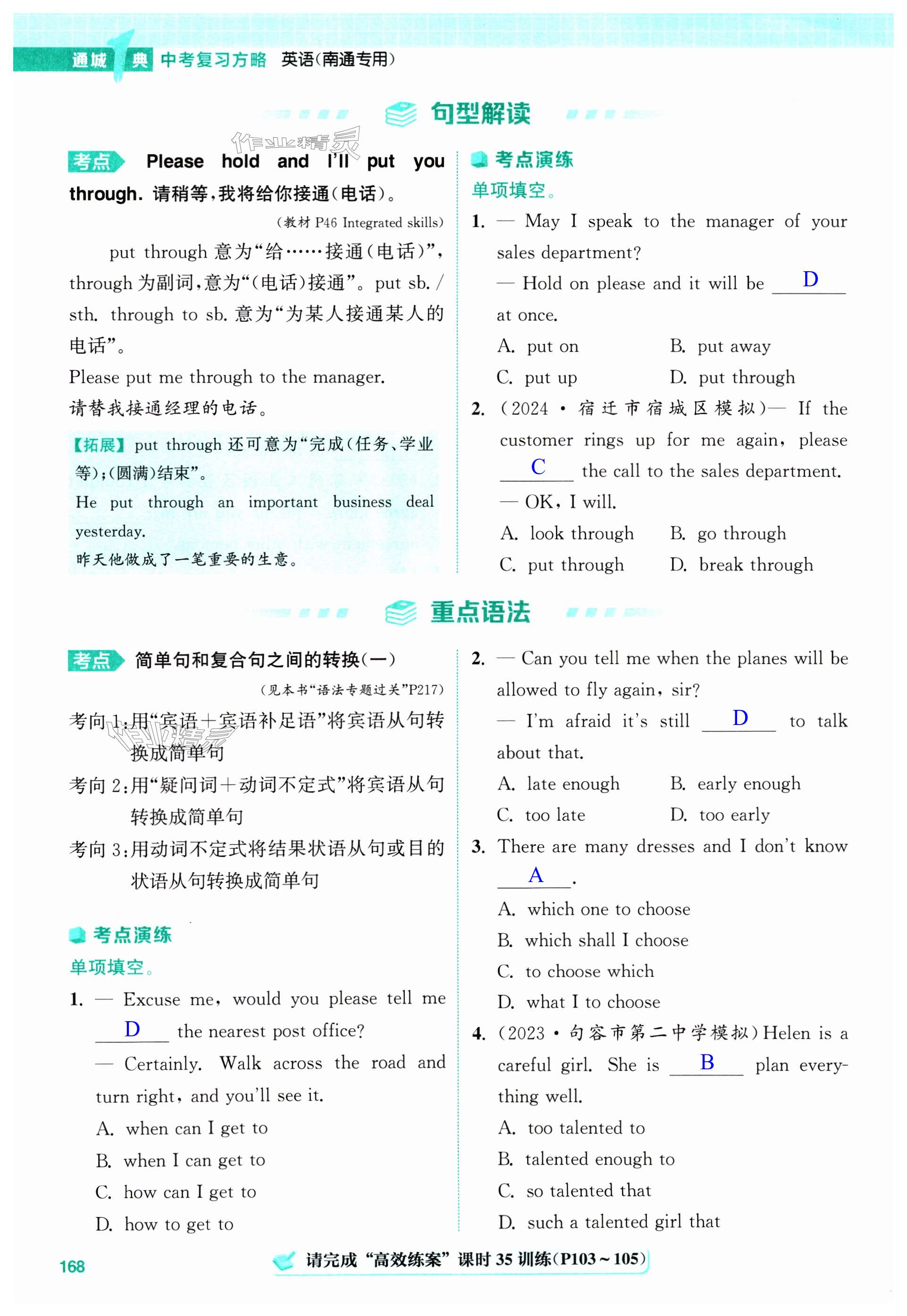 注:目前有些书本章节名称可能整理的还不是很完善,但都是按照顺序排列的,请同学们按照顺序仔细查找。练习册 2025年通城学典通城1典中考复习方略英语南通专用 答案主要是用来给同学们做完题方便对答案用的,请勿直接抄袭。