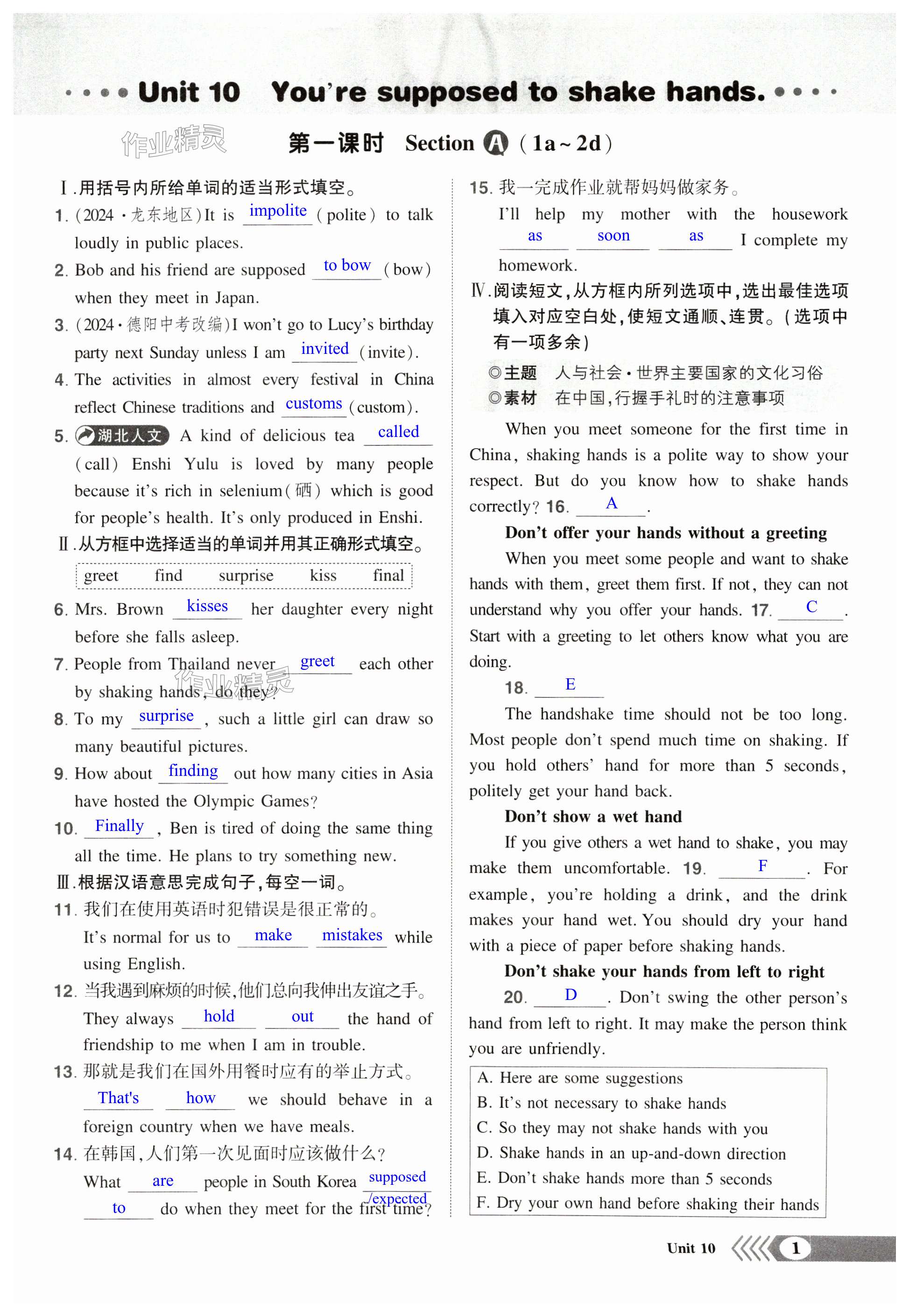 注:目前有些书本章节名称可能整理的还不是很完善,但都是按照顺序排列的,请同学们按照顺序仔细查找。练习册 2025年状元成才路创优作业九年级英语下册人教版湖北专版 答案主要是用来给同学们做完题方便对答案用的,请勿直接抄袭。