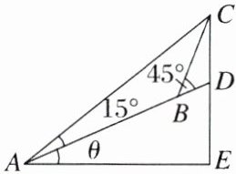 跟踪训练3 (1) (2023·南京模拟) 如图所示,在坡度一定的山坡A处测得山顶上一建筑物CD的顶端C对于山坡的斜度为15°,向山顶前进100 m到达B处,又测得C对于山坡的斜度为45°,若CD = 50 m,山坡对于地平面的坡度为θ,则cos θ等于( )