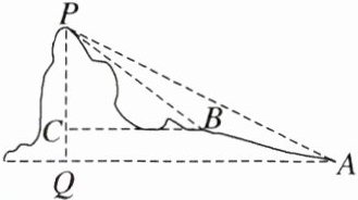 跟踪训练2 (1) 如图,在山脚A处测得山顶P的仰角为37°,沿坡角为23°的斜坡向上走28 m到达B处,在B处测得山顶P的仰角为53°,且A,B,P,C,Q在同一平面,则山的高度约为(参考数据:sin 37°≈0.6) ( )