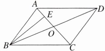 例1 如图,在平行四边形$ABCD$中,$AC$,$BD$相交于点$O$,$E$为线段$AO$的中点. 若$\overrightarrow{BE}=\lambda\overrightarrow{BA}+\mu\overrightarrow{BD}$($\lambda,\mu\in\mathbf{R}$),则$\lambda + \mu$等于 ( )