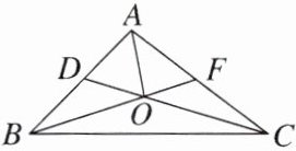 7. 如图所示,在$\triangle ABC$中,$D$,$F$分别是$AB$,$AC$的中点,$BF$与$CD$交于点$O$,设$\overrightarrow{AB}=\boldsymbol{a}$,$\overrightarrow{AC}=\boldsymbol{b}$,向量$\overrightarrow{AO}=\lambda\boldsymbol{a}+\mu\boldsymbol{b}$,则$\lambda + \mu$的值为______.