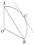 跟踪训练2 在扇形$OAB$中,$\angle AOB = 60^{\circ}$,$C$为$\overset{\frown}{AB}$上的一个动点,若$\overrightarrow{OC}=x\overrightarrow{OA}+y\overrightarrow{OB}$,则$3x + y$的取值范围是______.