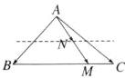 A设$\frac{[}{BM}$=法t二BC,(常规方法) TM $\frac{1}{2}$AM=$\frac{1}{2}$(AB+BM)= $\frac{1}{2}$ $\frac{t}{2}$BC=$\frac{1}{2}$AB+$\frac{t}{2}$(AC- AB)=($\frac{1}{2}$-$\frac{t}{2}$)AB+$\frac{t}{2}$AC,