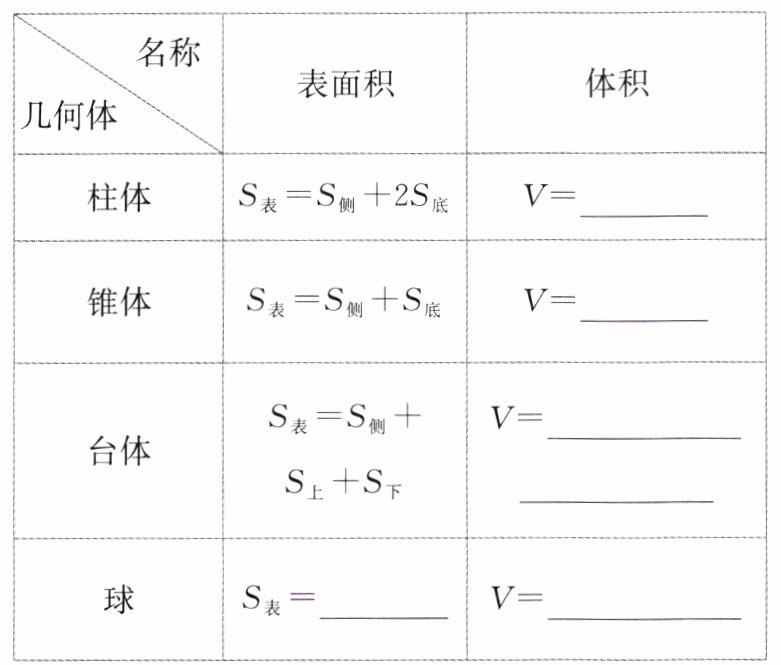 4. 柱、锥、台、球的表面积和体积