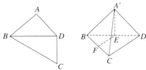 因为点F为底面Rt△BCD的外心,则三棱锥A'-BCD的外接球球心必在过点F且与平面BCD垂直的直线1上又点E为底面Rt△A'BD的外心,则外接球球心必在过点E且与平面A'BD垂直的直线12上.所以球心为1与12的交点.又FE//CD,CD BD,平面A,BD⊥平面BCD,平面 A'BD∩平面BCD=BD.所以FE⊥平面A'BD.所以球心为点F.又A'B =A'D=1,所以BD=$\sqrt{2}$,又CD=1,所以BC=$\sqrt{3}$,球半径R=$\frac{BC}{2}$=$\frac{\sqrt{3}}{2}$ 故V=$\frac{4}{3}$π($\frac{3}{2}$)3=$\frac{\sqrt{3}π}{2}$.7
