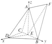 设平面DAB与平面ABF的法向量分别为n=(x1.y1,21),n=(x2,y2,22),平而面→ABD=AB(0,与$\sqrt{2}$平,一面√A2B)F, 的夹角为θ,因为EF=DA=(-$\sqrt{2}$,0 $\sqrt{2}$),