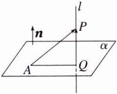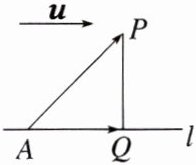 如图,已知直线l的单位方向向量为$\boldsymbol{u}$,A是直线l上的定点,P是直线l外一点,设$\overrightarrow{AP}=\boldsymbol{a}$,则向量$\overrightarrow{AP}$在直线l上的投影向量$\overrightarrow{AQ}=(\boldsymbol{a}\cdot\boldsymbol{u})\boldsymbol{u}$,在Rt△APQ中,由勾股定理,得PQ = $\sqrt{|\overrightarrow{AP}|^{2}-|\overrightarrow{AQ}|^{2}}=$________________.