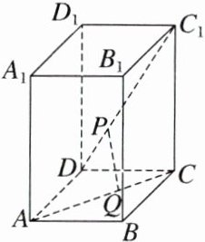例3 如图,在正四棱柱ABCD - A₁B₁C₁D₁中,AB = BC = 1,AA₁ = 2.动点P,Q分别在线段C₁D,AC上,则线段PQ长度的最小值是 ( )