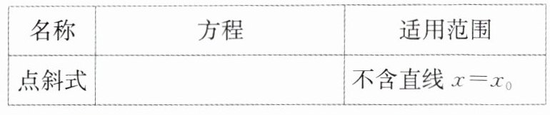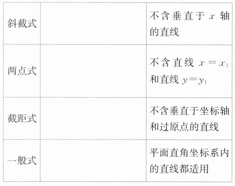 y-y。=k(x-x.) y=kx+b =x-x(x1≠x2,y1≠y2) $\frac{y}{-y}$ x2二xi $\frac{}{a}$+$\frac{Y}{b}$=1 Ax+By+C=0(A²+B²≠0)