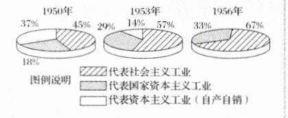 图片信息显示社会主义工业和国家资本主义工业所占比重迅速增加,资本主义工业所占比重逐渐缩小,直到最后消失。这是新中国对资本主义工业进行社会主义改造的结果。这标志着我国对生产资料私有制的社会主义改造取得决定性胜利,社会主义经济制度在我国基本建立起来。