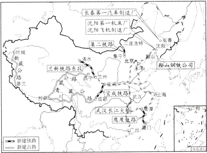 解读 材料一在地图中呈现了我国“一五”计划时期在机械、交通等方面取得的成就。