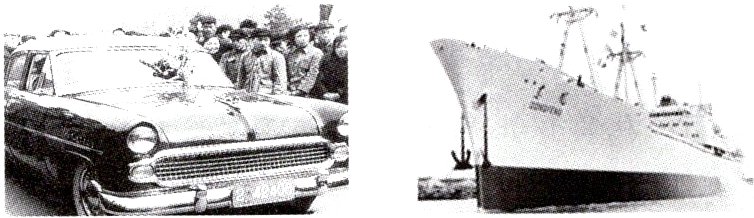 1958年5月,新中国制造的第一辆小轿车——“东风”牌小轿车 1960年中国自行设计、建造的第一艘万吨级远洋货轮——“东风号”下水