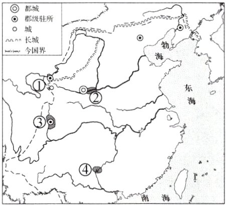 A [①位于甘肃临洮一带,这是秦长城的西起点,故选 A 项;灵渠沟通了湘江和漓江,位于广西境内,②位置在关中地区,与灵渠位置不符,排除 B 项;郑国渠是关中地区的水利工程,③位于长江上游四川成都地区,与郑国渠位置不符,排除 C 项;都江堰位于四川成都平原,④位于湘江流域,与都江堰位置不符,排除 D 项。]