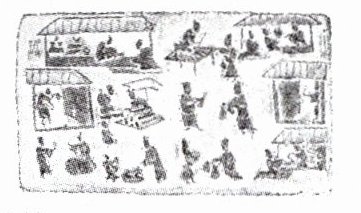 挖掘·教材信息 阅读“东汉画像砖中描绘的集市”,并解释图中信息。