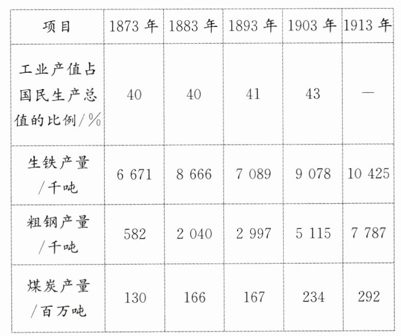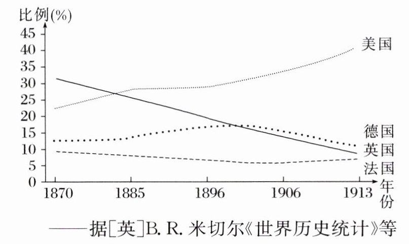 解读 材料中甲反映了1873—1913年英国工业生产缓慢发展的状况;材料中乙、丙通过数据反映了美、英、德在世界工业生产中所占比例。
