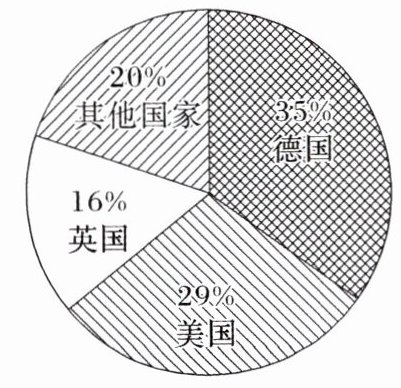 乙:1913年英、美、德电气产品占世界总额的比例
