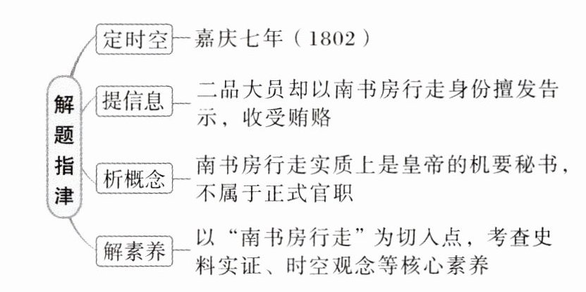典例 (2022·湖南卷,5)嘉庆七年(1802),户部侍郎兼管钱局二品大员周兴岱任江西主考时,却以南书房行走(即在南书房当值的官员)的身份擅发告示,收受贿赂。这反映当时 ( )