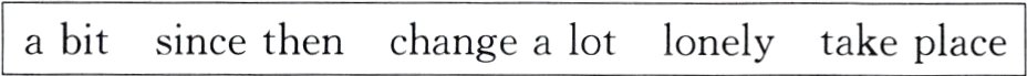 1. since then 2. a bit 3. changed a lot 4. took place 5. lonelier