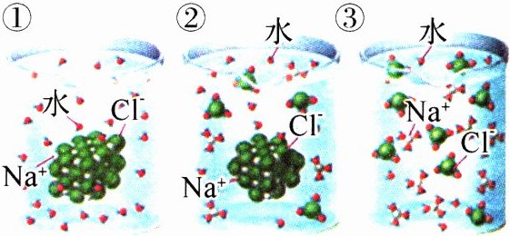 B 【解析】氯化钠是由钠离子和氯离子构成的,所以它溶于水后,溶液中有氯离子和钠离子以及溶剂水的分子,故A正确;氯化钠易溶于水,不能说明其在空气中也易扩散,更不能说明其在空气中能挥发,故B错误;从微观角度来说,溶解就是在溶剂分子的作用下,溶质分子或离子均匀分散到溶剂中形成的溶液,故C正确;由题图可知,最终每个钠离子结合3个水分子,可能会形成Na(H₂O)₃⁺,故D正确。