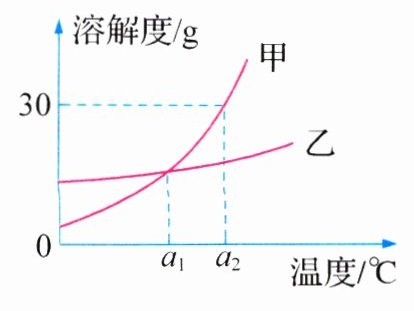 A. 在a₂℃时,将20 g甲放入50 g水中,形成70 g甲的饱和溶液