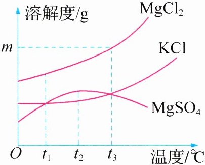 (3)t₃℃时,向100 g 30%的MgCl₂溶液中加入40 g MgCl₂固体后恰好变为饱和溶液,则m的值为________。
