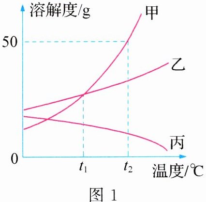 10. (2024·四川自贡月考)甲、乙、丙三种固体物质的溶解度曲线如图1所示,请回答下列问题。