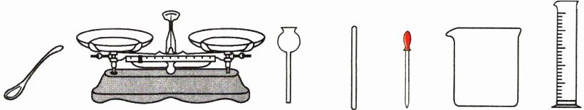 - 仪器:托盘天平、滴管、烧杯、玻璃棒、量筒(规格有25 mL、50 mL和100 mL)。