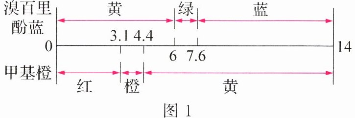 4. <亮点原创> 图1是甲基橙和溴百里酚蓝在不同pH下的显色情况。图2中能使二者都显示黄色的是 ( )