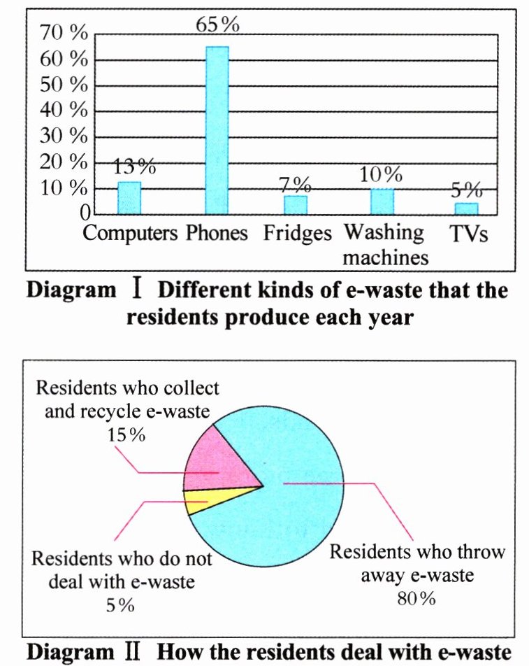 Last week, Guangming Research Centre made surveys among 1,000 residents(居民)in Xingfu Community. The surveys were mainly about different kinds of e - waste and how the residents deal with e - waste. The diagrams below show the results.
