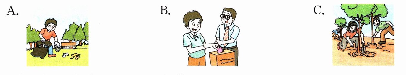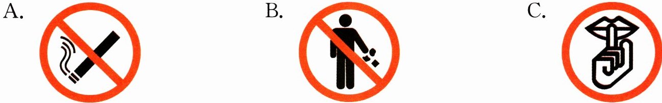 ( )2. What sign is on the wall?