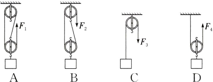 例13 分别使用图中四种装置匀速提升同一重物,不计滑轮重、绳重和摩擦,最省力的是 ( )