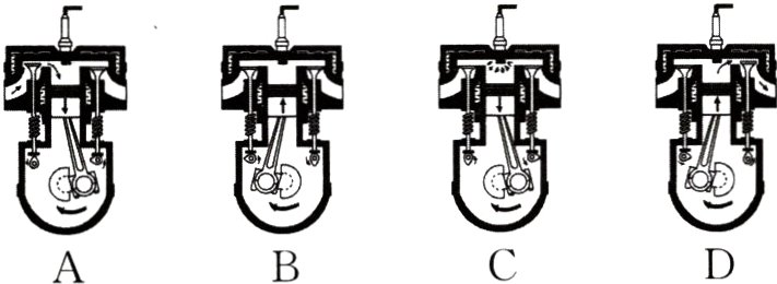 例5(2024·镇江)下面是汽油机工作时的各个冲程示意图,其中做功冲程是 ( )
