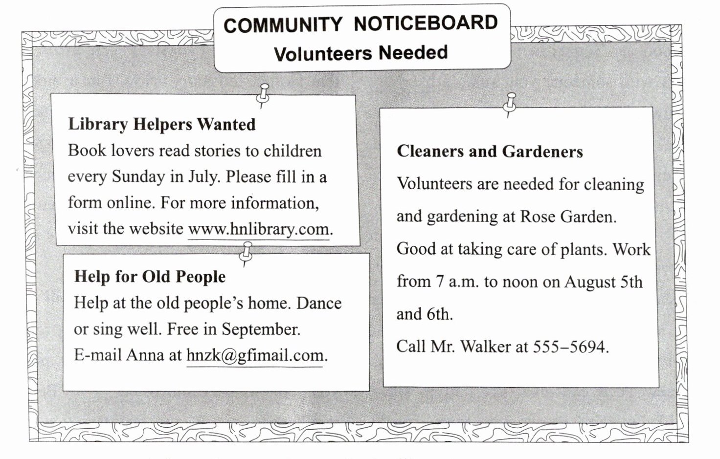 语篇解读 这是一篇应用文,介绍了三则社区志愿者招聘广告:招聘图书馆助手、清洁工和园丁、养老院志愿者。主题语境属于“人与社会”范畴中“社会服务与人际沟通”这一主题群,涉及子主题“志愿服务与公共服务”。
