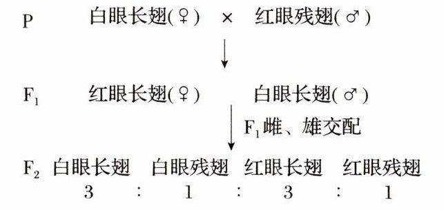 3.(2023·北京卷,4)纯合亲本白眼长翅和红眼残翅果蝇进行杂交,结果如图。F2中每种表型都有雌、雄个体。根据杂交结果,下列推测错误的是( )