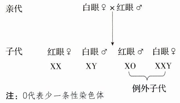 2.B 白眼雌蝇与红眼雄蝇杂交,子代中雌蝇为红眼,雄蝇为白眼,可判断果蝇红眼对白眼为显性,A正确;白眼为隐性性状,因此正常情况下亲代白眼雌蝇只能产生1种类型的配子,B错误;由图可知,XXY的个体为雌性,具有Y染色体的果蝇不一定发育成雄性,C正确;例外子代的出现是源于母本减数分裂异常,出现了不含X染色体的卵细胞或含有两条X染色体的卵细胞,D正确。