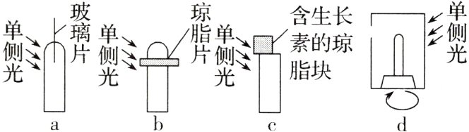 (3)提示:不能证明。在②处切断和在③处切断,两组实验幼苗都不生长、不弯曲,说明此时不能产生生长素,但无法证明②③之间有无感受单侧光刺激的部位。