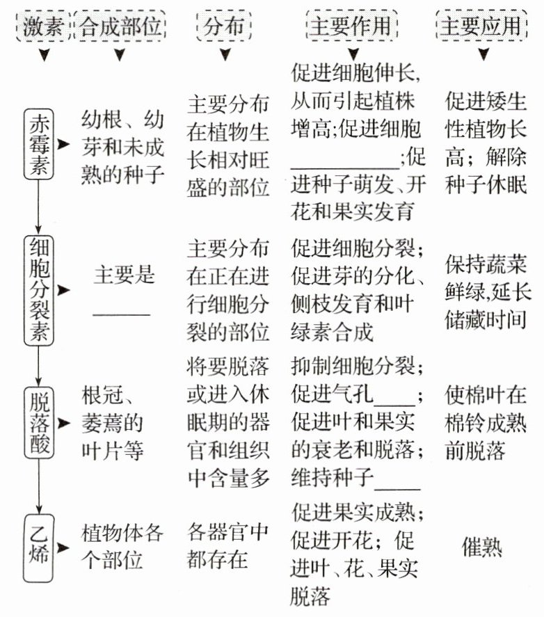 1.其他植物激素的合成部位和主要作用