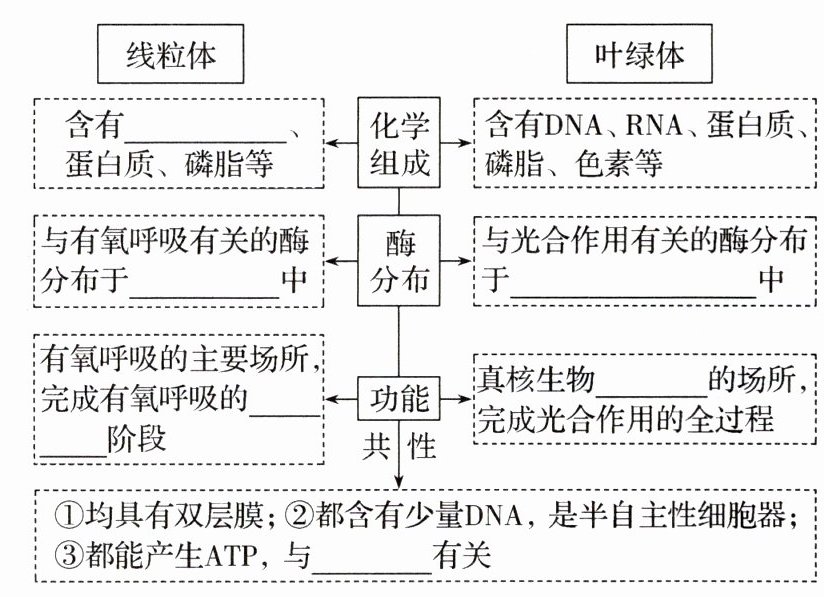 (1)DNA、RNA 内膜和基质 类囊体薄膜和基质 第二、三 光合作用 能量转换