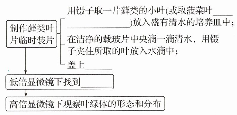 (3)乙同学在用苔藓实验时,直接将苔藓叶片置于载玻片中央清水中制成临时装片,主要是由于苔藓叶片________________________,整个实验中一定要________________,否则叶绿体会收缩不便观察。