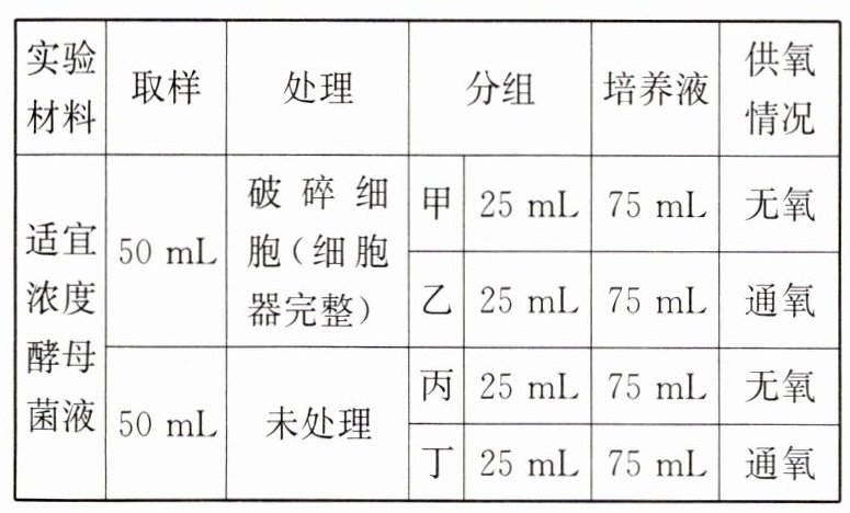 (1)会产生CO₂和H₂O的组别是________,会产生酒精的组别是________。丁组的氧气消耗量________(填“大于”“小于”或“等于”)乙组。