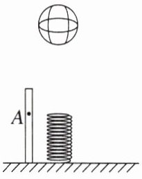 (2018·浙江)如图所示,在地面上竖直固定了刻度尺和轻质弹簧,弹簧原长时上端与刻度尺上的A点等高。质量m = 0.5kg的篮球静止在弹簧正上方,其底端距A点高度h₁ = 1.10m。篮球静止释放,测得第一次撞击弹簧时,弹簧的最大形变量x₁ = 0.15m,第一次反弹至最高点,篮球底端距A点的高度h₂ = 0.873m,篮球多次反弹后静止在弹簧的上端,此时弹簧的形变量x₂ = 0.01m,弹性势能为Eₚ = 0.025J。若篮球运动时受到的空气阻力大小恒定,忽略篮球与弹簧碰撞时的能量损失和篮球的形变,弹簧形变在弹性限度范围内。求(g = 10m/s²):