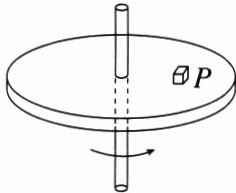 练4(2021·北京)如图所示,圆盘在水平面内以角速度 $\omega$ 绕中心轴匀速转动,圆盘上距轴 $r$ 处的 $P$ 点有一质量为 $m$ 的小物体随圆盘一起转动。某时刻圆盘突然停止转动,小物体由 $P$ 点滑至圆盘上的某点停止。下列说法正确的是 (