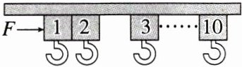 3.(2023·广东)(多选)某同学受电动窗帘的启发,设计了如图所示的简化模型。多个质量均为 $1\ kg$ 的滑块可在水平滑轨上滑动,忽略阻力。开窗帘过程中,电机对滑块 $1$ 施加一个水平向右的恒力 $F$,推动滑块 $1$ 以 $0.40\ m/s$ 的速度与静止的滑块 $2$ 碰撞,碰撞时间为 $0.04\ s$,碰撞结束后瞬间两滑块的共同速度为 $0.22\ m/s$。关于两滑块的碰撞过程,下列说法正确的有 (