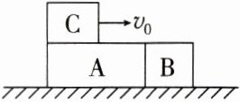练 1(2023·江门一模)(多选)如图所示,A、B 两木块紧靠在一起且静止于光滑水平面上,木块 C 以一定的初速度 $ v_0 $ 从 A 的左端开始向右滑行,最后停在 B 木块的右端,A、B、C 表面粗糙,对此过程,下列叙述正确的是(