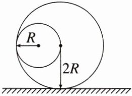 练 7(2024·江苏模拟)如图所示,质量为 $ 2m $、半径为 $ R $ 的小球,放在半径为 $ 2R $、质量为 $ m $ 的大空心球内,大球开始静止在光滑水平面上。当小球从如图所示的位置无初速度沿内壁滚到最低点时,小球移动的距离是(