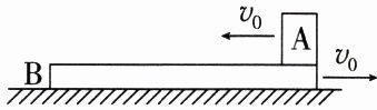 拟)如图所示,一个质量为 $ M = 2\ kg $ 的木板 B 放在光滑水平面上,在其右端放一个质量为 $ m = 1\ kg $ 的小铁块 A(小铁块 A 可以看成质点),A、B 间的动摩擦因数为 $ \mu = 0.6 $,现给 A 和 B 以大小相等、方向相反的初速度 $ v_0 = 6\ m/s $,使 A 开始向左运动,B 开始向右运动,B 足够长,最后 A 不会滑离 B, $ g = 10\ m/s^2 $。求: