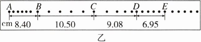 。(2)若已得到打点纸带,并将测得各计数点间距标在下面(如图乙),$A$为运动起始的第一点,则应选