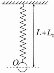 练1 (2024·江苏模拟)如图所示,轻质弹簧上方固定,下方连接质量为$m$的小球,弹簧原长为$L_0$,小球静止时位于图中的$O$点,此时弹簧伸长量为$L$。将小球从$O$点向下拉一小段距离$A(A < L)$,然后由静止释放并开始计时。已知小球做简谐运动的周期为$T$,空气阻力不计,弹簧始终在弹性限度内。以$O$点为坐标原点,取竖直向下为正方向,则小球运动的位移$x$随时间$t$的表达式为(
